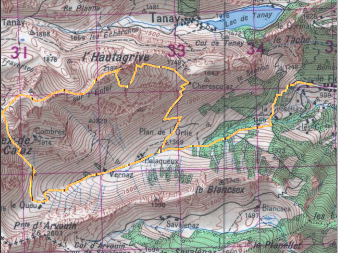 | Point de départ: Le Flon, hameau au bout d'une route au dessus et à l'ouest de Vouvry  | |