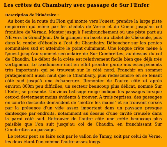 | Sommet(s) franchi(s) : Chambairy, Sur Combrettes. | Col(s) franchi(s) : Col de Chaudin. |