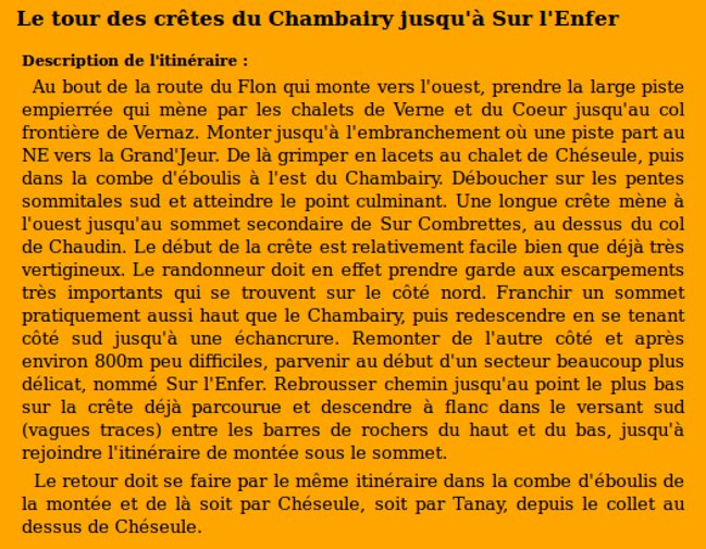 | Sommet(s) franchi(s) : Chambairy. | Col(s) franchi(s) : Aucun. |