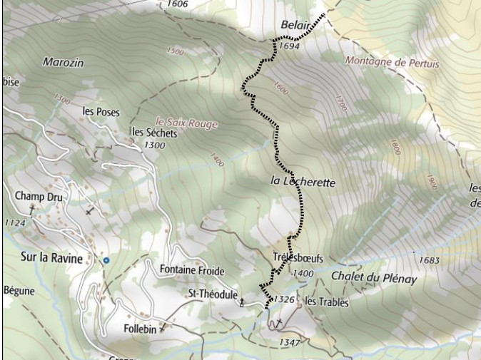 | Chalets rencontrés : Chalets de Trélesboeufs. | Lieux-dits traversés: Chapelle St-Théodule. |