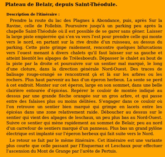 | Sommet(s) franchi(s) : Pointe de Belair. | Col(s) franchi(s) : Aucun. |