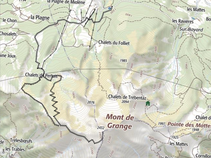 | Chalets rencontrés : chalets de Pertuis (Grange). | Lieux-dits traversés: Parking des Feux (la Chapelle . |