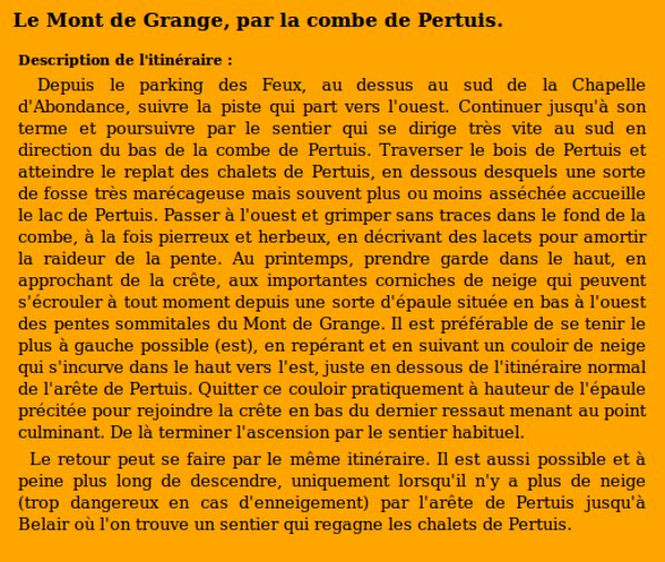 | Sommet(s) franchi(s) : Mont de Grange. | Col(s) franchi(s) : Aucun. |