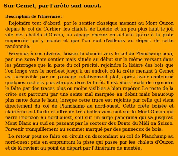 | Sommet(s) franchi(s) : Sur Gemet. | Col(s) franchi(s) : Col de Planchamp. |