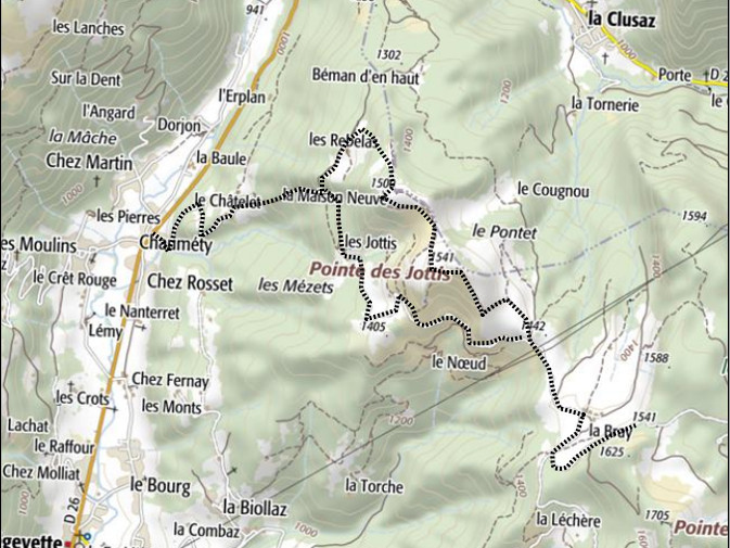 | Point de départ: Mégevette et environs, sur la route col de Jambaz- St-Jeoire en Faucigny ou Col de Jambaz | |