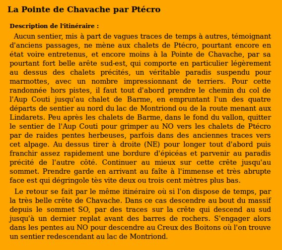 | Sommet(s) franchi(s) : Pointe de Chavache. | Col(s) franchi(s) : Aucun. |