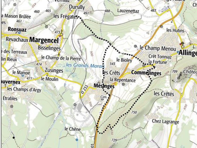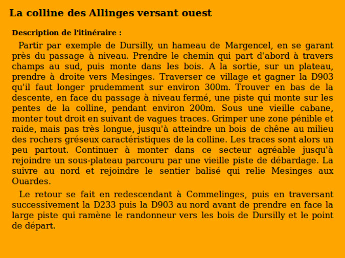 | Chalets rencontrés : Aucun. | Lieux-dits traversés: Allinges chef-lieu, Commelinges, Dursilly, Mesinges. |