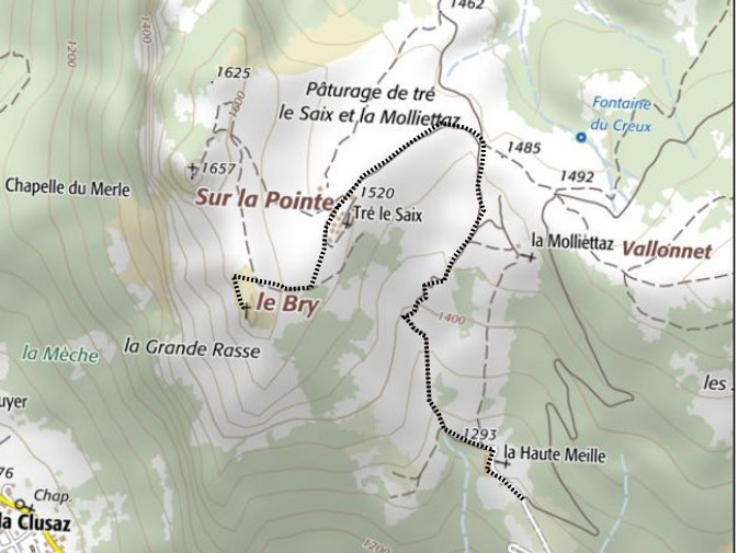 | Chalets rencontrés : Chalets de la Haute Meille, Chalets de Tré le Saix. | Lieux-dits traversés: Paturage de Tré le Saix. |