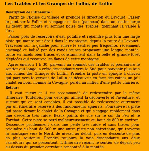 | Photo de l'itinéraire Carte de l'itinéraire | Description de l'itinéraire |