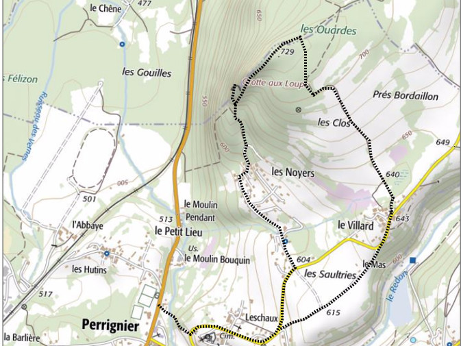 | Chalets rencontrés : Aucun. | Lieux-dits traversés: Grotte de la Maladière, Le Mas, Les Noyers, Le Villard. |
