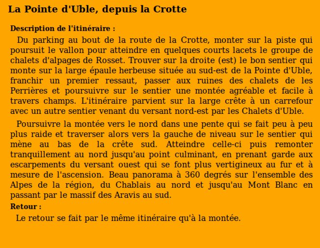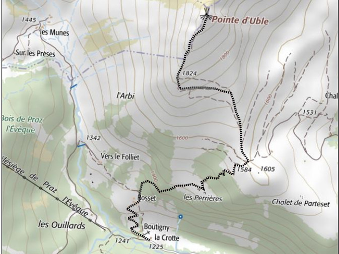| Sommet(s) franchi(s) : Pointe d'Uble. | Col(s) franchi(s) : Aucun. |
