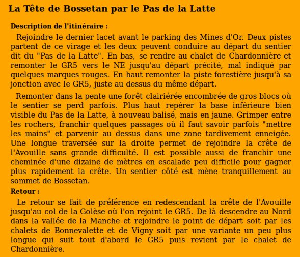 | Sommet(s) franchi(s) : Tête de Bossetan. | Col(s) franchi(s) : Col de la Golèse. |