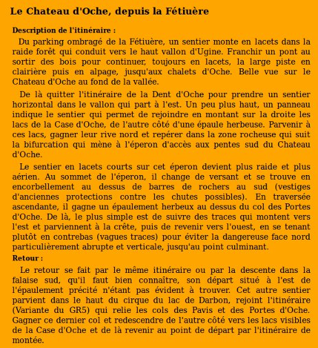 | Chalets rencontrés : Chalets d'Oche. | Lieux-dits traversés: Aucun. |